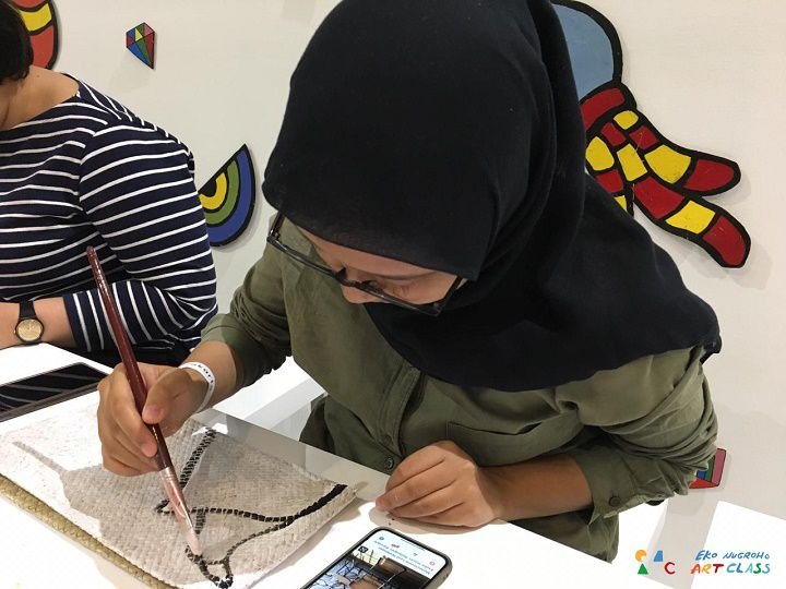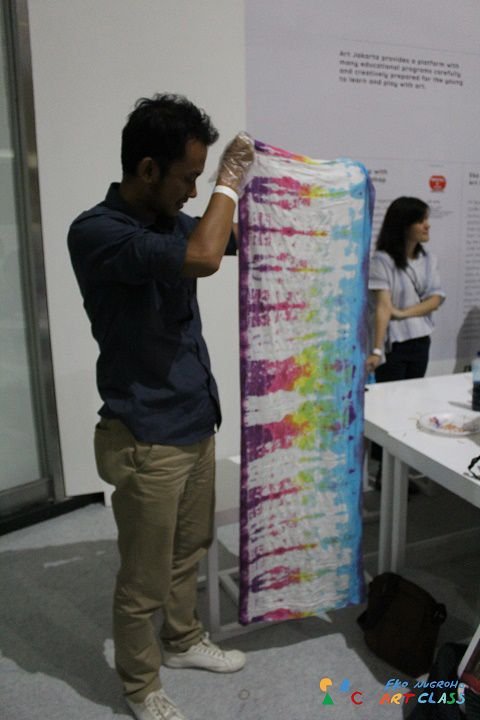 Pengunjung remaja sampai dewasa juga mengikuti workshop dari Eko Nugroho Art Class. Aktivitas Tye Dye Scarf mengajak pengunjung untuk membuat motif pada kain santung dengan teknik tye dye yang hasilnya bisa langsung digunakan sebagai fashion scarf. Selain itu, ada pula aktivitas Woven Bag Painting di mana pengunjung remaja sampai dewasa diajak melukis pada media tas pandan. Pengunjung tidak hanya menikmati karya seni rupa yang dihadirkan Art Jakarta 2019, tetapi juga bisa membuat karyanya sendiri melalui berbagai workshop tersebut.